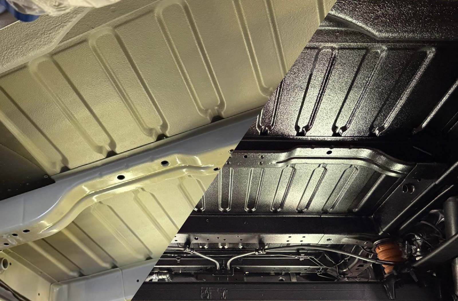 Vor der Versiegelung wird der Unterboden gründlich gereinigt und vorbereitet. Anschließend werden alle relevanten Bereiche fachgerecht behandelt, um bestehende Korrosion zu stoppen und neue Rostbildung langfristig zu verhindern.